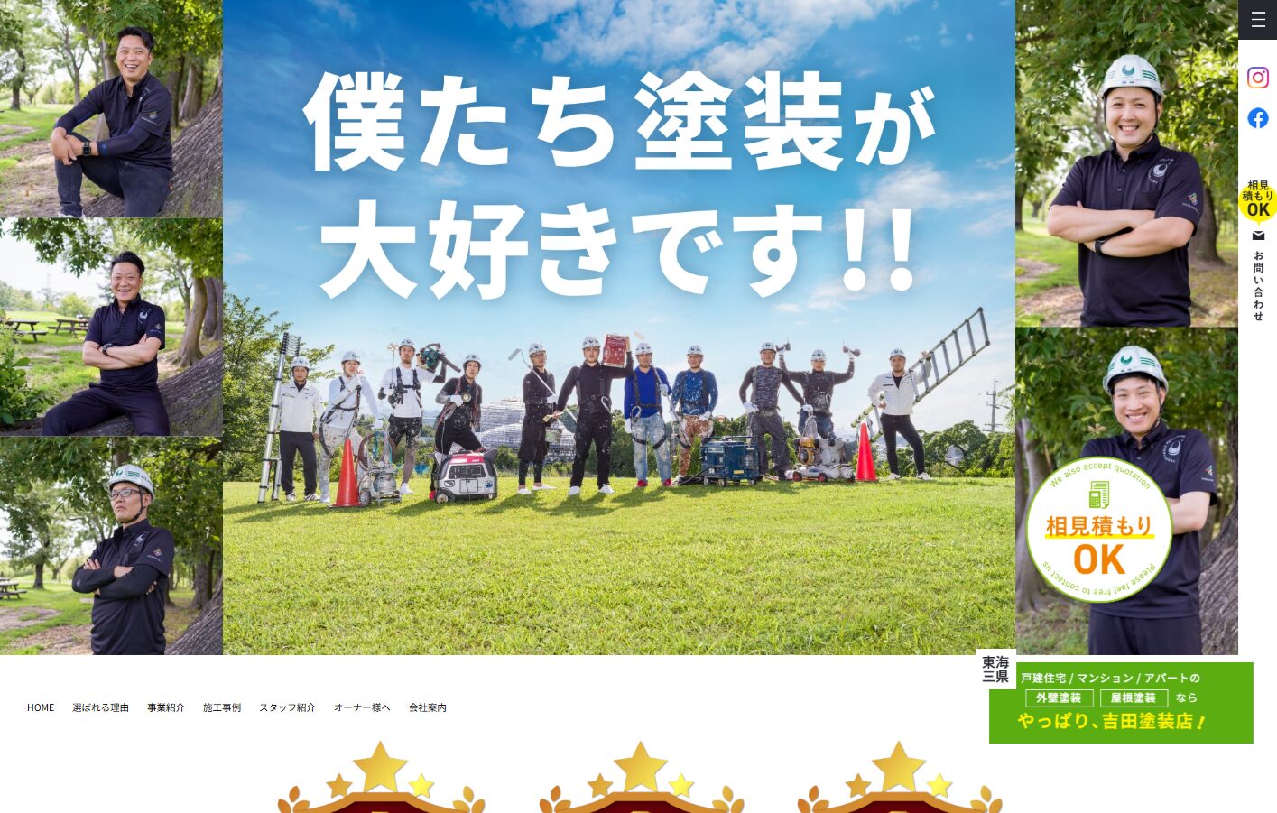 吉田塗装店のモットーは”笑顔”!真心込めたおもてなし精神でお客様の笑顔を大切にしております。会社名 株式会社吉田塗装店 代表者 吉田 秀樹 所在地 〒454-0957