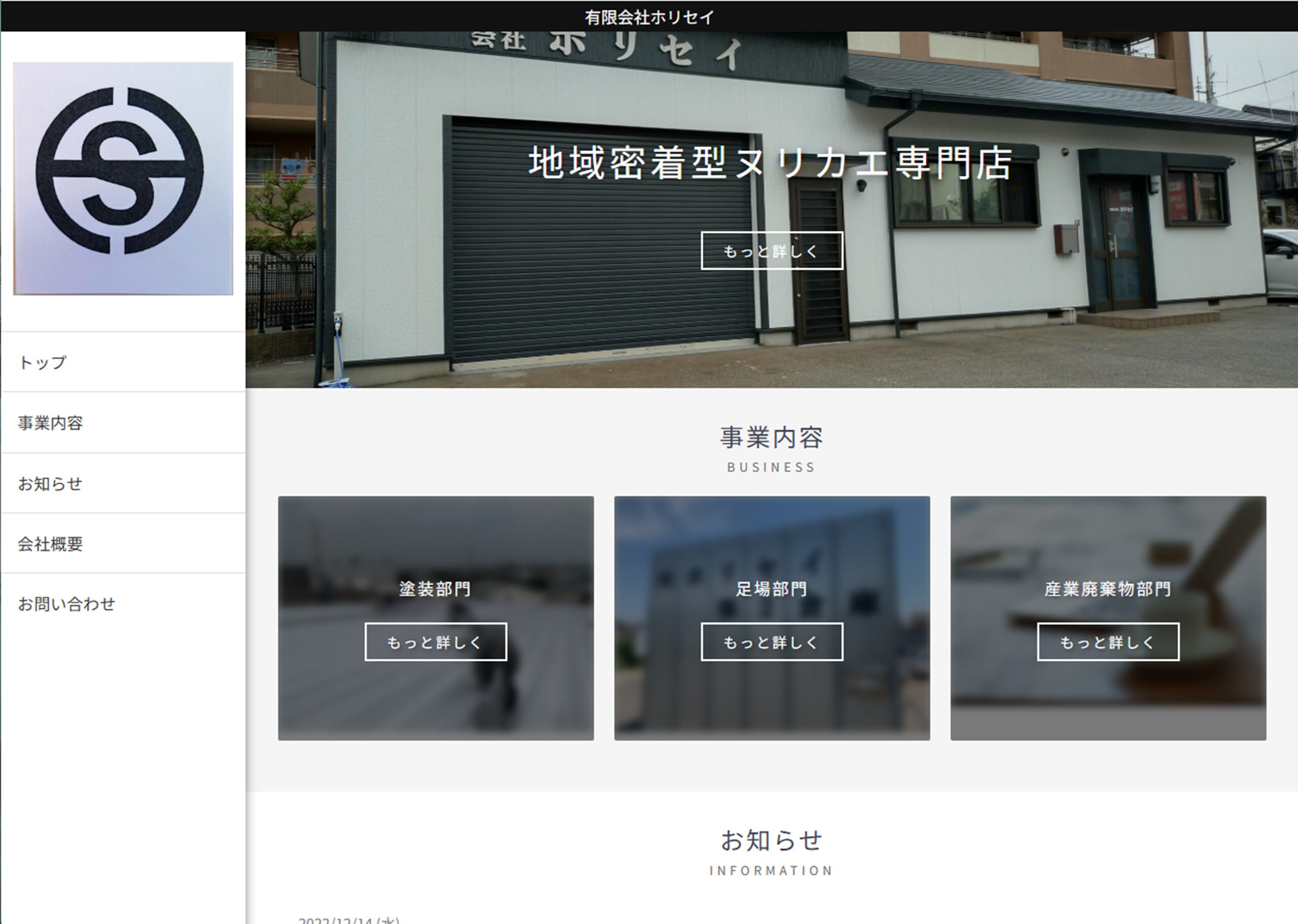 FAX 0564-74-9417営業時間 9:00〜19:00 休日 事業内容 一般建築塗装/水道工事/外構エクステリア工事/大工工事/防水工事/板金工事 取得 瑕疵保険 取扱いクレジットカード 取扱いリフォームローン その他
