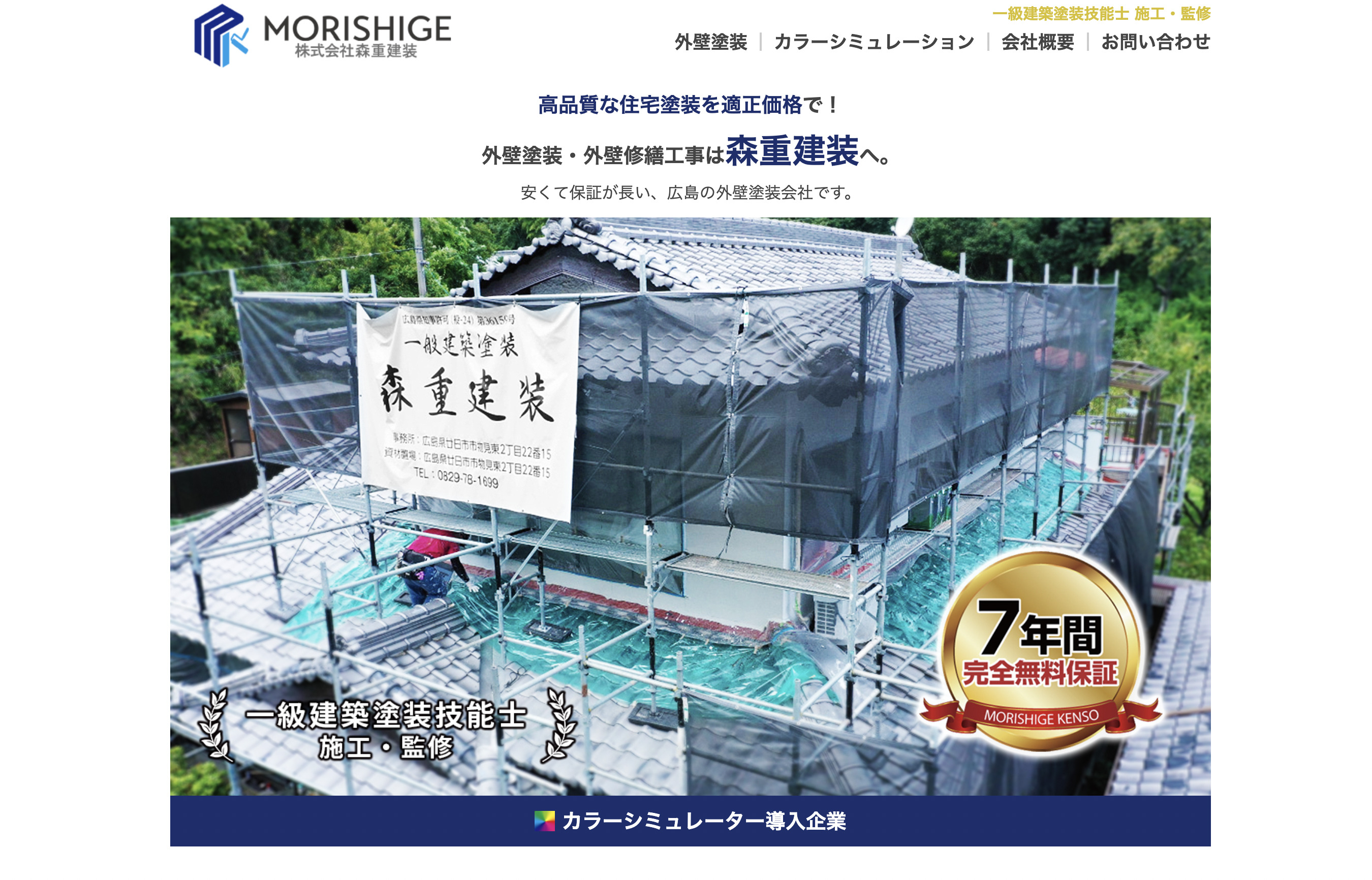 安くて保証が長い外壁塗装業者をお探しの方は、ぜひご相談ください。会社名 株式会社森重建装 代表者 森重 大輔 所在地 〒739-0426