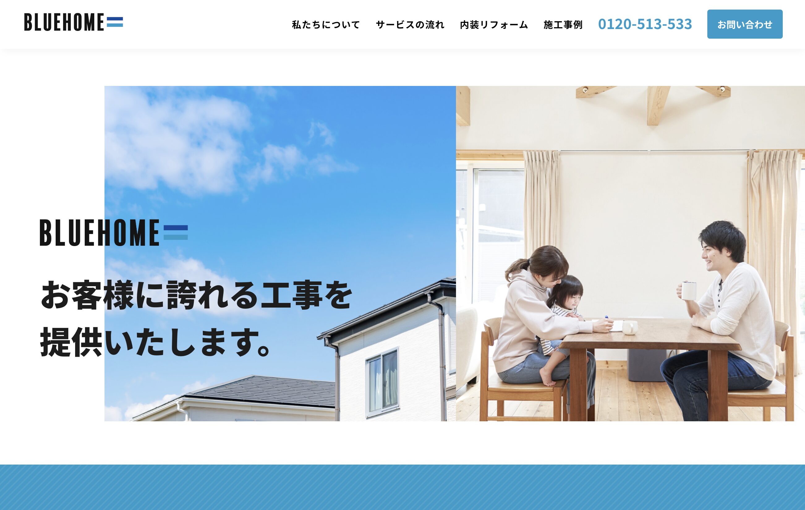 埼玉県北本市を中心に、外壁塗装工事や内装リフォームを行うブルーホーム株式会社です。関わるすべてのお客様に誠心誠意向き合い、「常にお客様に誇れる工事を」という志を、外壁塗装、屋根工事、リフォームという形で実現していきます。また、長年の経験に裏打ちされた確かな技術を持って、お客様に必ず満足していただけるような施工を提供します。