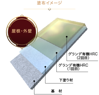 グランデ有機HRCの緻密で強靱な塗膜は、紫外線や雨風などの外的要因から建物を守り、