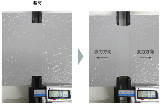 グランデ有機HRCの塗膜は10mm以上伸長してもなおひび割れは生じませんでした。