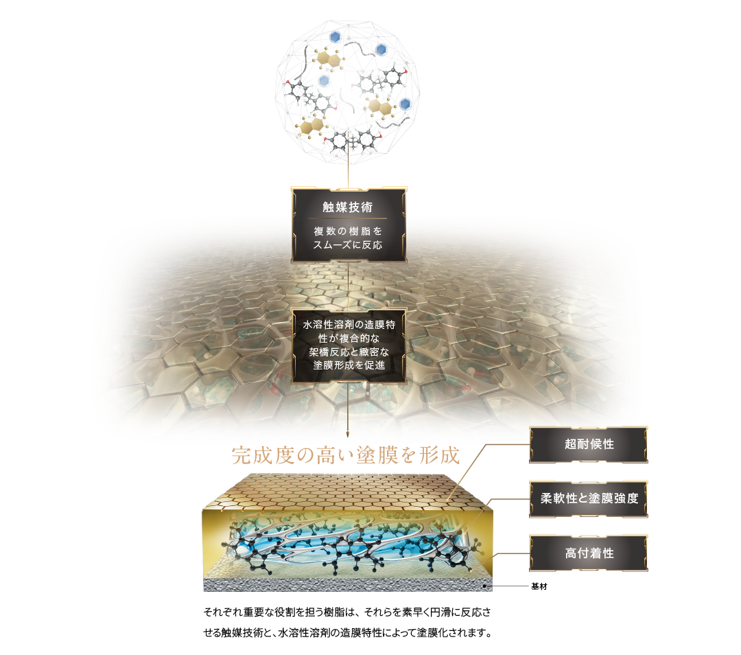 4つの有機樹脂の複合技術が最高峰の塗膜性能を創造