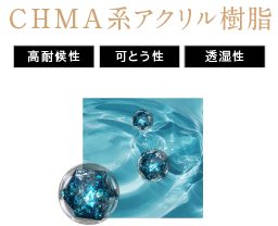 アクリル原料の中で最も耐候性に特化したCHMAモノマーを主原料に採用。このアクリル樹脂だけでもフッ素塗料に並ぶ耐候設計が可能となり、有機系セラミックス樹脂の結合剤としても働きます。