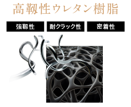 特殊なウレタン樹脂が強靱な3次元架橋構造を形成。塗膜の機械的強度を大幅に向上させ、塗膜に高い靱性を付与します。