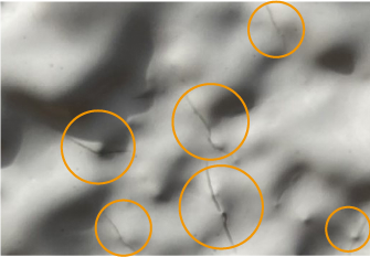 〈促進試験1000時間経過時の塗膜拡大写真〉