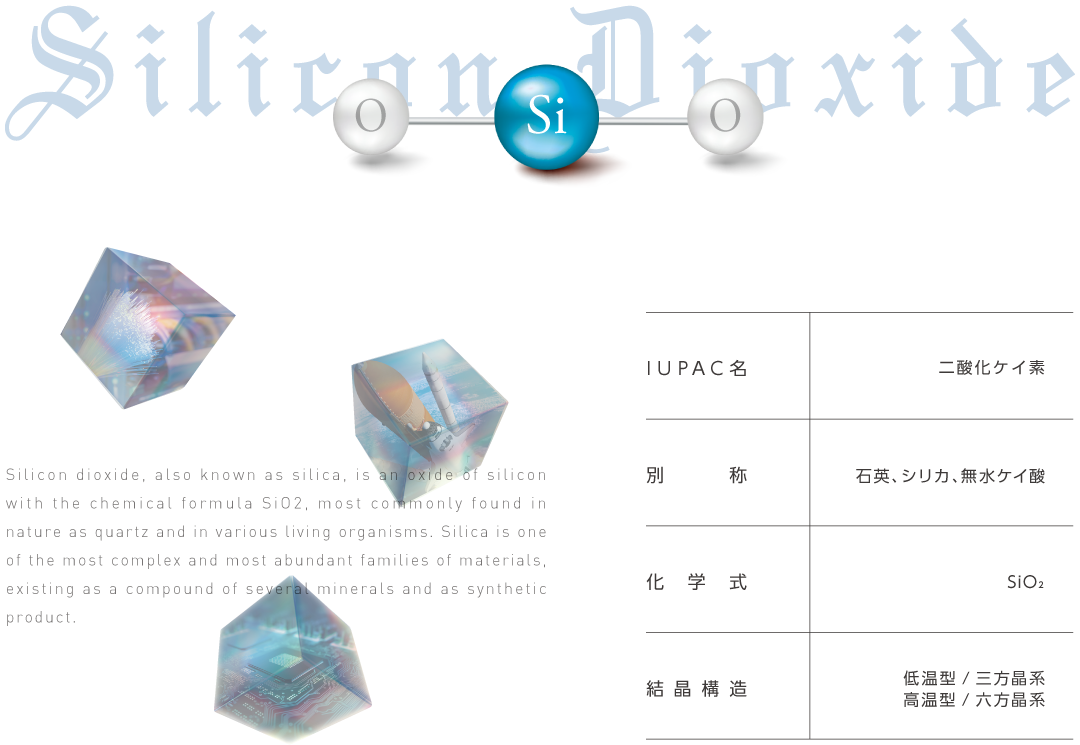 珪石(石英)は地殻を形成する物質の一つとして自然界に存在し、石英ガラス、光ファイバー、半導体の他スペースシャトルの窓にも使用されるなど