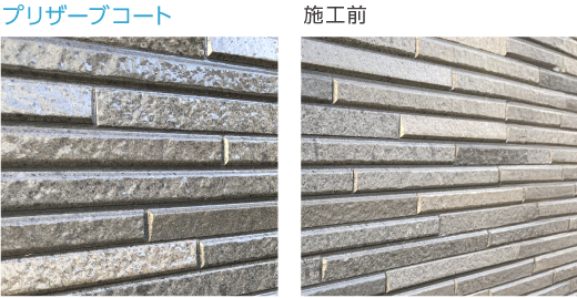 光触媒コーティングが施されたサイディングに一般的なクリヤー塗料を塗布すると、十分な付着力が得られないだけでなく、サイディング自体の触媒作用により、クリヤー塗膜が早期に分解・劣化してしまいます。プリザーブコートは、クリヤベースハイパーとの併用により、光触媒面に対しても確実な付着力を発揮。さらに、触媒作用による塗膜分解を抑制し、長期間にわたり外壁材を保護します。