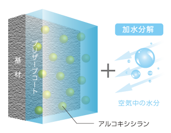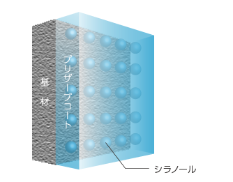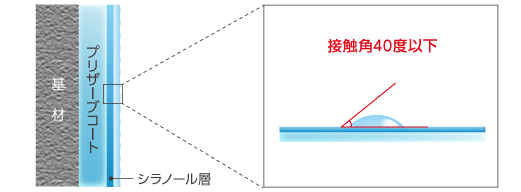 プリザーブコートは塗膜の表層にシラノール層を形成することで親水性塗膜となります。
