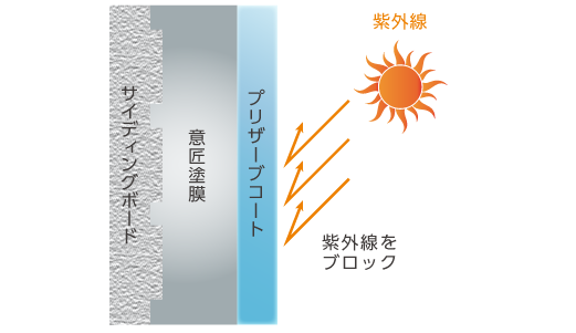 紫外線抑止効果に優れたプリザーブコートは、サイディングを紫外線から守り、色あせや艶落ちを抑制。美しい意匠を長期にわたり保持します。