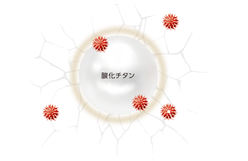 ラジカルとは、塗料の顔料に含まれる酸化チタン(白顔料)が紫外線や酸素、水などに接触することで発生する劣化因子のことです。 人の肌や塗料の樹脂のような有機質を破壊し、塗膜劣化の原因になっています。 タテイルアクアは耐候性に特化した多重ラジカル制御形酸化チタンを採用。あらゆる劣化因子から塗膜を効果的に守ります。