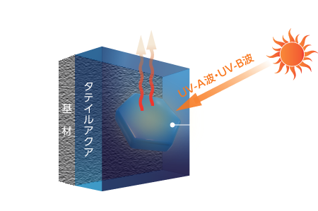 樹脂劣化の直接要因となるUV-A波とUV-B波を効果的に吸収し無害な熱として放散。