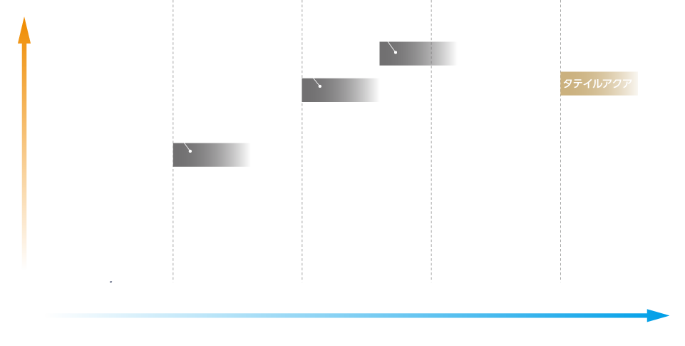 タテイルアクアは塗装後6か月ほどで成膜し、塗装表層にシラノール層を形成します。その後発揮するハイドロクリーニング効果により建物の美しさを長期にわたり保ち続けます。