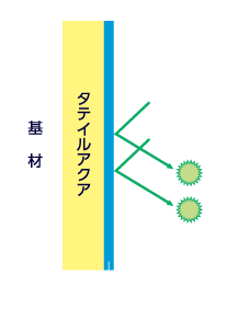 タテイルアクアの厚い多重構造無機バリア層は、発生してしまったラジカルをバリア層内に封じ込めラジカルの増殖を抑制し、樹脂に含まれる有機質を守ります。